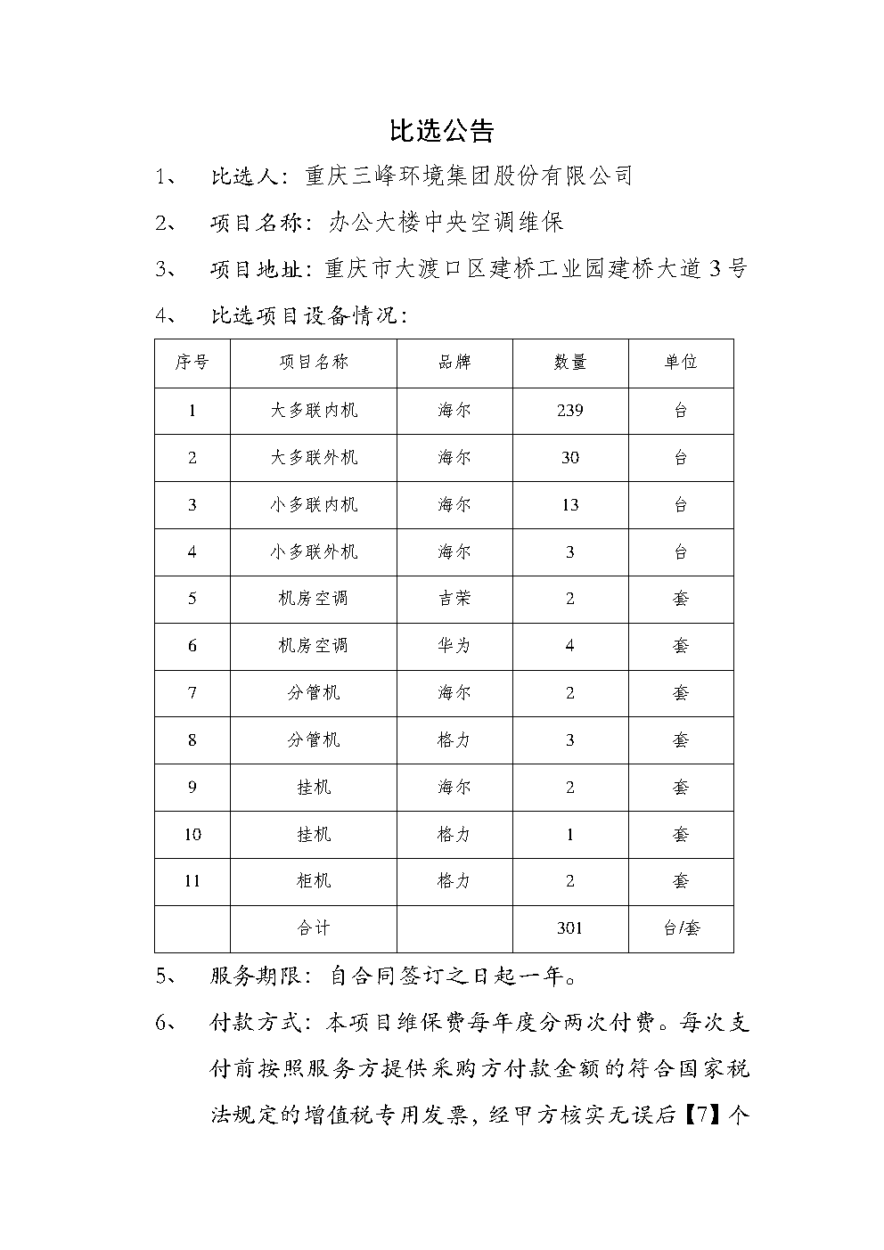 附件一《重慶三峰環(huán)境集團(tuán)股份有限公司辦公大樓中央空調(diào)維保》.doc